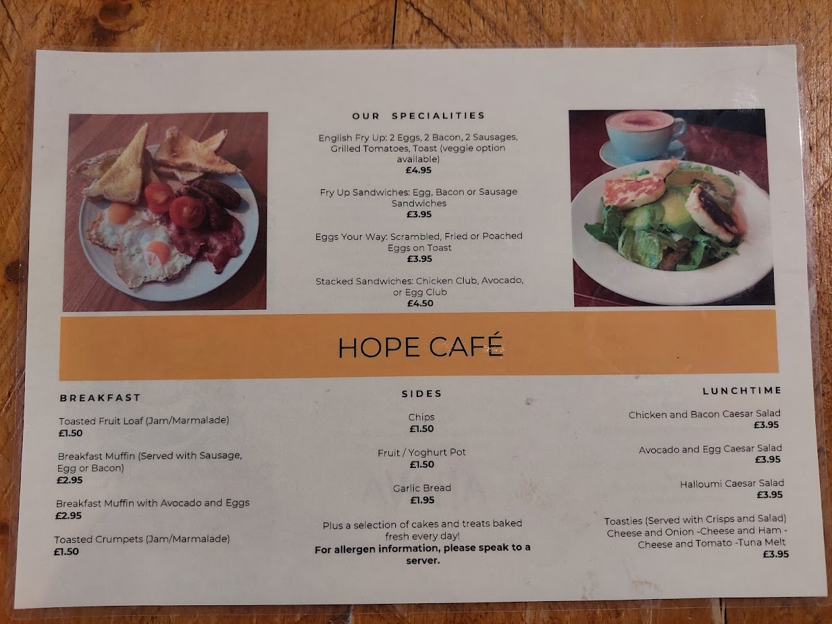Specialities feature hearty choices like the English fry up, fry up sandwiches, eggs prepared to order, and stacked sandwiches, providing a more substantial option for casual dining.